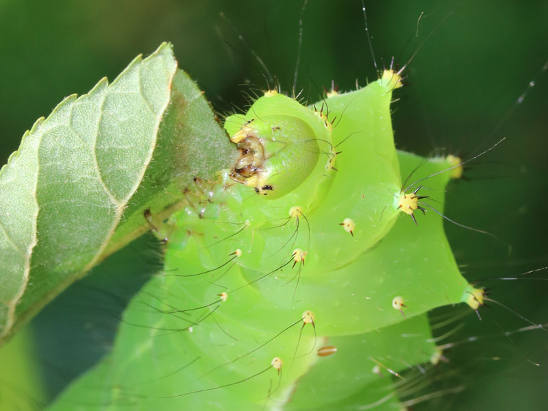 オナガミズアオの幼虫(中齢) : 飼育個体(京都府精華町産) 2016.6.28